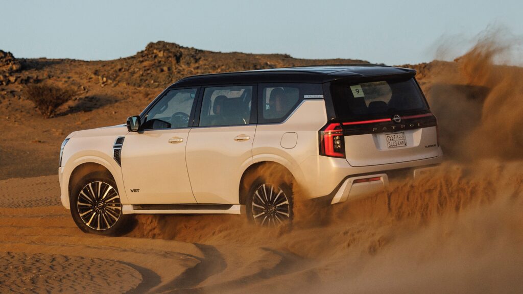 The Nissan Patrol looks like a true giant on the road. It is long, wide, and tall, which gives it a very strong road presence. When you see it coming, you immediately know it’s something big & special.
